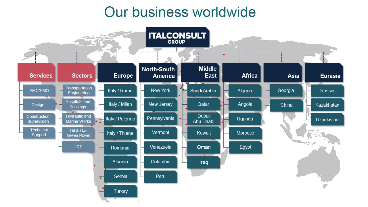 Italconsult has vast sectoral and multidisciplinary capabilities enabling us to provide a complete range of worldwide activities in different sectors.